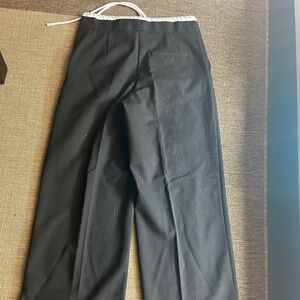 Beautiful wide leg black pants from Zara. Side zip, two front pockets and white drawstring detail at waist. High waisted - length 42 inches from waist to hem.
