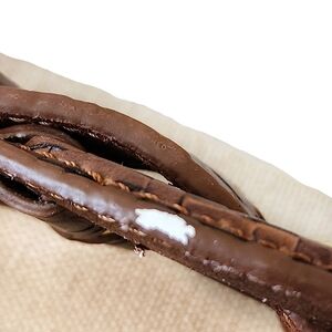 Wide woven brown leather belt stretchy cream strap classic boho summer S/M