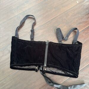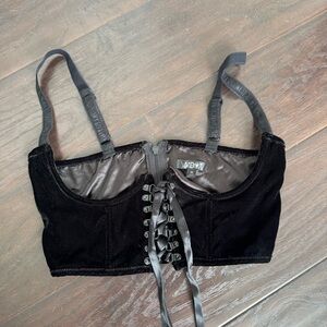 Chic black velvet bralette with lace-up front. Adjustable straps for a perfect fit.