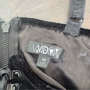 Widow Black Velvet Corset Top β Lace-Up Front, Goth Glam Vibes M whimsigoth