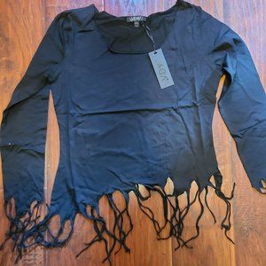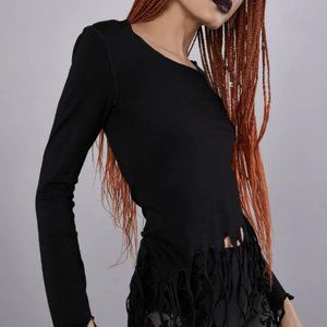 Widow Magical Mortal Long Sleeve Top cuz you have a gift. Be an enchantress with this long sleeve top that has a scoop neckline and a distressed fringe on the hem and sleeves.