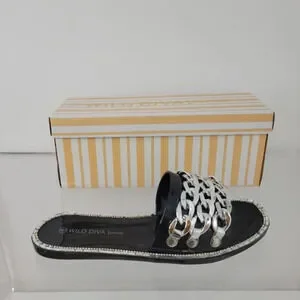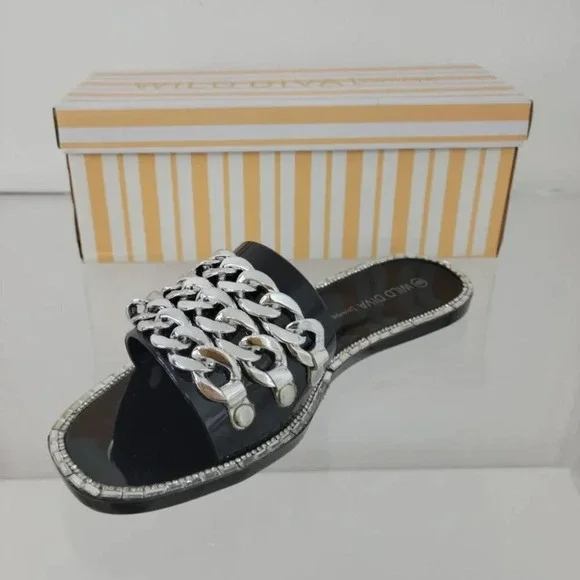 Wild Diva Chain Rhinestone Slides