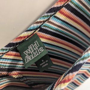 Wild Fable Colourful Striped Dress with Ruffle Sleeves
