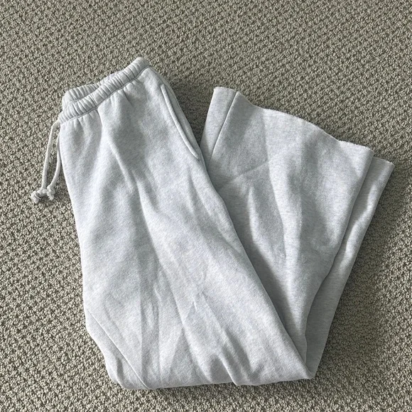 Comfortable light gray sweatpants with a soft elastic waistband and adjustable drawstring. Classic pullover style with roomy pockets for everyday wear. Durable knit fabric for all-day comfort and easy care.