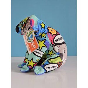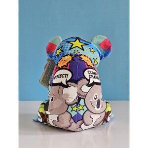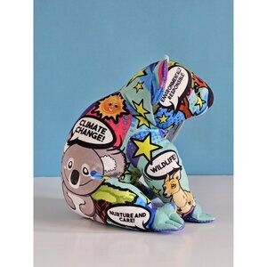 His intention is to bring awareness to children regarding conserving the planet. He is covered with little tips and ideas such as Recycle & Reuse.