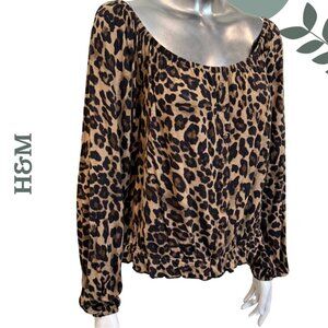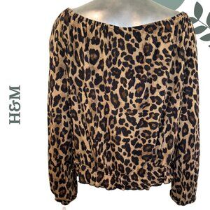 Wild Side Off-Shoulder Animal Print Top by H&M | Long Sleeve Knit | Size Large