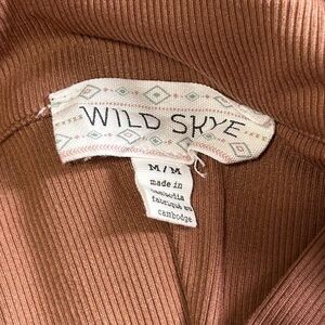 Wild Skye brown cropped tee with collar and embroidered flower. Size M. 95% polyester, 5% spandex. Tight fit. Pink and brown embroidered flower on left side! NWOT. All clothing items are washed prior, even if never worn.