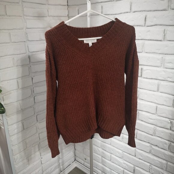 Wild Skye Ladies Rust Color V-neck Chenille Sweater