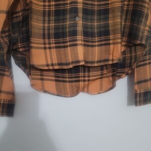Wild fable pumpkin Womens long sleeve button down plaid cropped woven shirt orange and black in size Medium. for measurments refer to the pictures