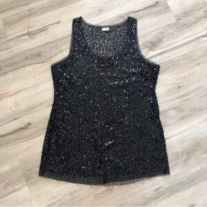 No size tag but otherwise excellent condition. Completely black sheer material covered in sequins.