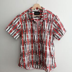 Wildfang Woman's Essential Short Sleeve Button Up Red Gray White Geometric XL