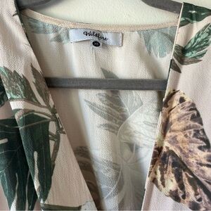 Wildfire Tropical Leaf Print Maxi Dress XS Beige Green Sleeveless Vacation
