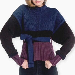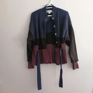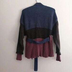 Wildfox Barb Chunky Knit Jacket Colourblock Cardigan with Waist Tie Small