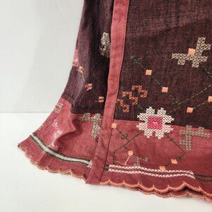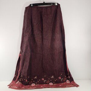 Wildroot Linen Maxi Skirt Size XL Red Floral