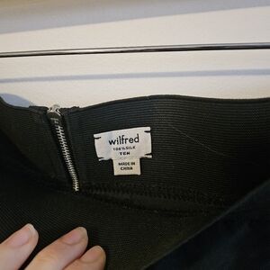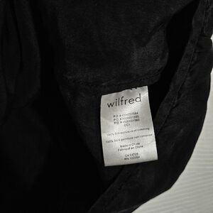 Beautiful 100% silk Wilfred (Aritzia) tulip skirt with a flattering wide high-waist elastic waistband, front pockets, and back zip features. It’s cut from light, drapey silk with a soft feel and matte look.