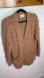 This is a fully fashioned cardigan with raglan sleeves and hand-placed pom poms. It’s made from soft, lofty yarn made with merino wool and cotton. This version is constructed with a Cable stitch in a unique, custom design for a three-dimensional look and texture.”