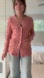 Chic pink cardigan with textured knit. Features button closure and pockets. Ideal for layering. Pom Poms with a very ski chalet knit pattern. Has wool content, but is quite soft.