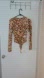 Chic animal print bodysuit by Wilfred. Features bold black spots on a tan background. Ideal for a standout style.