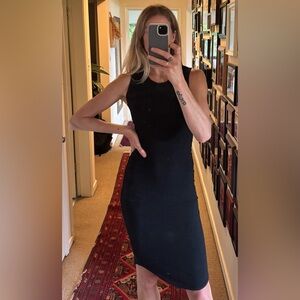 Wilfred Aritzia Black Knit Woven Crochet Sleeveless Contour Bodycon Midi Dress