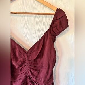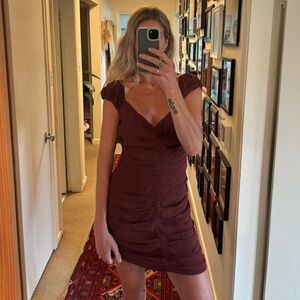 Wilfred Aritzia Brown Veda Ruched Off Shoulder Zip Up Bodycon Contour Mini Dress