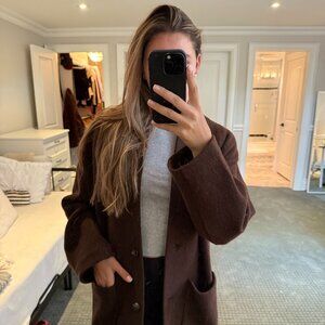 Effortlessly elegant and cozy, this Wilfred jacket from Aritzia is crafted from lightweight wool for the perfect balance of warmth and comfort. Featuring a flattering mid-length cut and a rich dark brown tone, it’s a timeless piece that layers beautifully for fall or early spring.