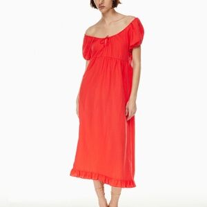 This is a fit-and-flare dress with raglan sleeves and a ruffled hem. It's made with lightweight linen and LENZING™ ECOVERO™ Viscose