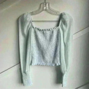 Wilfred Aritzia Saga Smocked Blouse Aura Blue Light Glow size XXS