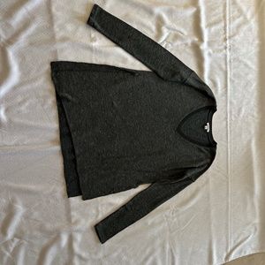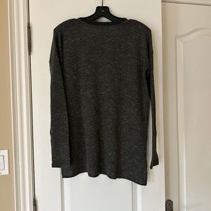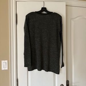 Details: A flowy lightweight and loose fitting sweater that would look great with tights or leggings even jeans. It has a marled knit appearance with a relaxed fit and an asymmetrical hemline with exaggerated side slits. The top is meant to look like it has texture.