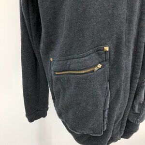 Wilfred Aritzia charcoal grey Rousseau cocoon hooded cardigan zipper pockets