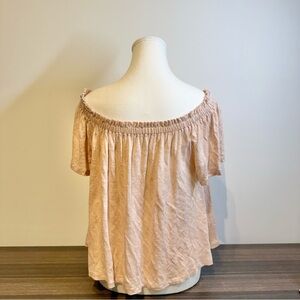 Chic off-shoulder design. Soft blush color. Perfect for casual elegance.