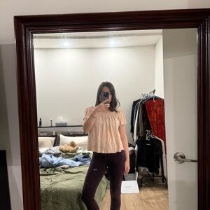 Wilfred Aritzia | women's medium Blush Off-Shoulder pink 100% linen top ruffles
