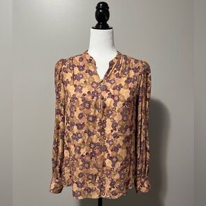 Wilfred Ava Blouse Ling Sleeve Sandy Beige Reverie Purple Floral Motif