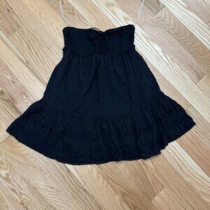 This is a smocked mini dress with adjustable straps, a tiered skirt and lace trim details. It's cut from drapey, lightweight fabric with a crinkle finish.