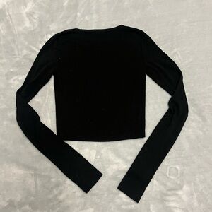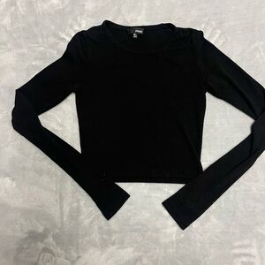 This sleek black long sleeves features a fitted, cropped design with long sleeves, perfect for a chic and modern look. The smooth, stretchy fabric ensures a comfortable fit that contours to your body, making it an essential addition to your wardrobe.
