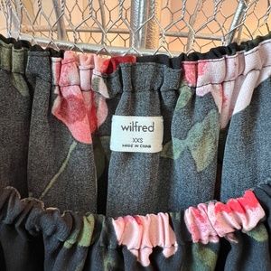 Never been worn so in perfect condition. Wilfred Black Floral short sleeve blouse with elastic neckline so can be worn off the shoulders too as another option.