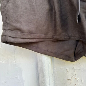 Beautiful linen blend tie waist shorts. Side pockets, rear pocket, folded gradient hem.