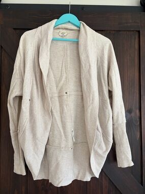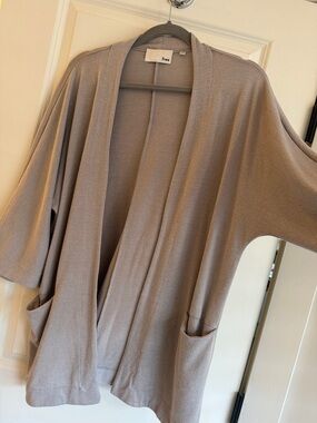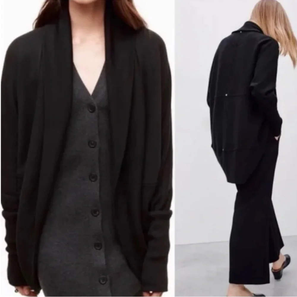 Soft draped silhouette for effortless layering. Open front with relaxed fit. Long sleeves for added coverage. Versatile wardrobe staple for day or evening.