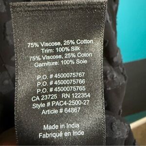 This elegant black blouse features long sleeves and a stylish bib collar, enhanced with pleated and ruffled details for a sophisticated look. The lightweight fabric offers a flowing silhouette, making it perfect for both casual and formal occasions. Its versatile design ensures it can be dressed up or down effortlessly.