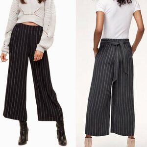 Wilfred Black Striped High Rise Tie Back Pull On Faun Wide Leg Pants