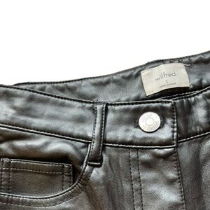 The iconic Wilfred Melina Pants are a must-have for any wardrobe. These high-rise cropped pants combine timeless design with modern vegan leather construction. Perfect for dressing up or down, they pair effortlessly with your favorite tops and footwear. Note: Left belt loop needs mending due to minor fraying.