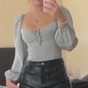 Expensive, well-made blouse. Tight fit, and perfect for fancier occasions. Classy and elegant looking, with a unique sage colour. Very trendy, and flattering. Guaranteed to receive compliments in this :)