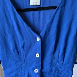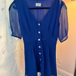 Wilfred Blue buttoned up chiffon dress in outstanding condition. Never worn. Button front with detailed bodice. Lovely puff short sleeves and deep v neckline.