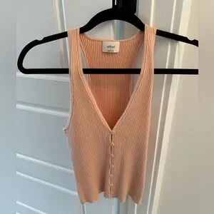 Pink ribbed tank with button-front detail. Perfect condition. Stretchy fabric, size S (will fit xs-m)