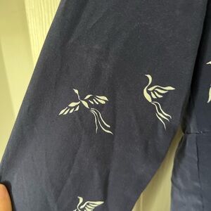 Wilfred By Aritzia 100 % Silk Dove Print Long sleeve Mini Navy Blue Dress