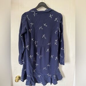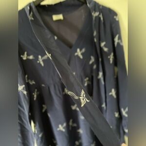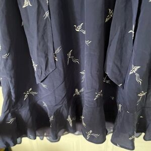 Wilfred By Aritzia 100 % Silk Dove Print Long sleeve Mini Navy Blue Dress