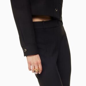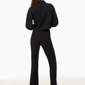 These are high-waisted pants with a flared leg and darted back. They're made with (Re)ssential — softly structured stretch fabric that holds its form while you move easy. It’s sourced from a premier Portuguese mill and made with recycled materials and LENZING™ ECOVERO™ Viscose — responsibly sourced, wood-based fibres produced through a process that reduces impact on forests, biodiversity and water supply.