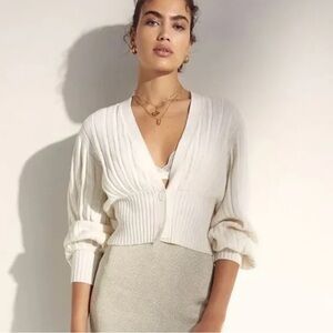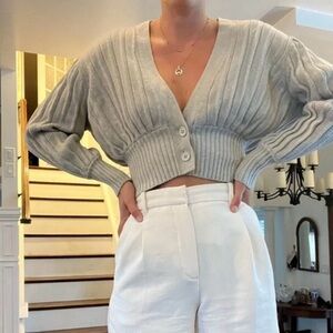 Chic ribbed cardigan with button-up front. Cropped design for versatile styling.