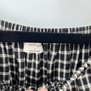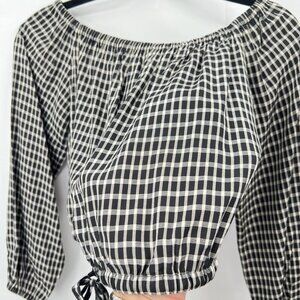 Brand: Wilfred | checkered, off shoulder, long sleeves, cropped blouse top, good pre-owend condition.