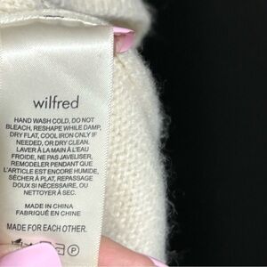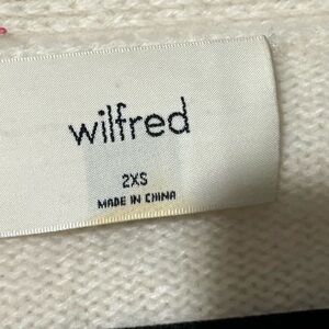 Elegant cream cardigan by Wilfred. Features a V-neck and button closure. Soft and stylish for any occasion.