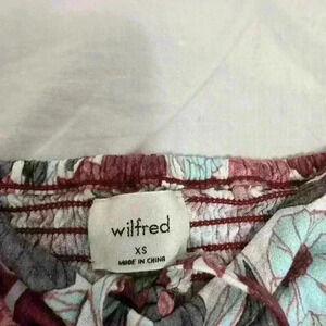 Wilfred woman’s cropped camisole with flowery pink and white designs, cropped with a flattering sweet heart necklace in size xsmall